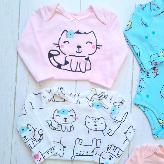 Set de 5 bodies manga larga 100% algodón para bebé nena - ¡Últimos disponibles!