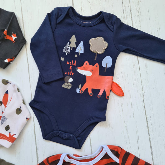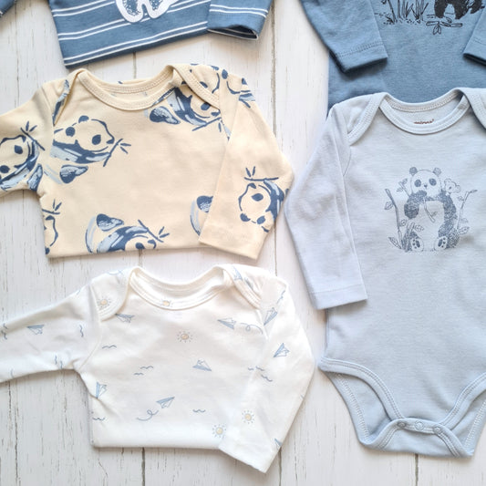 Set de 5 bodies manga larga 100% algodón para bebé varón - ¡Últimas unidades!