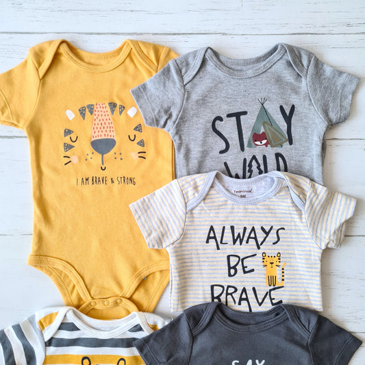 Set de 5 bodies manga corta 100% algodón para bebé - ¡Últimas unidades disponibles!