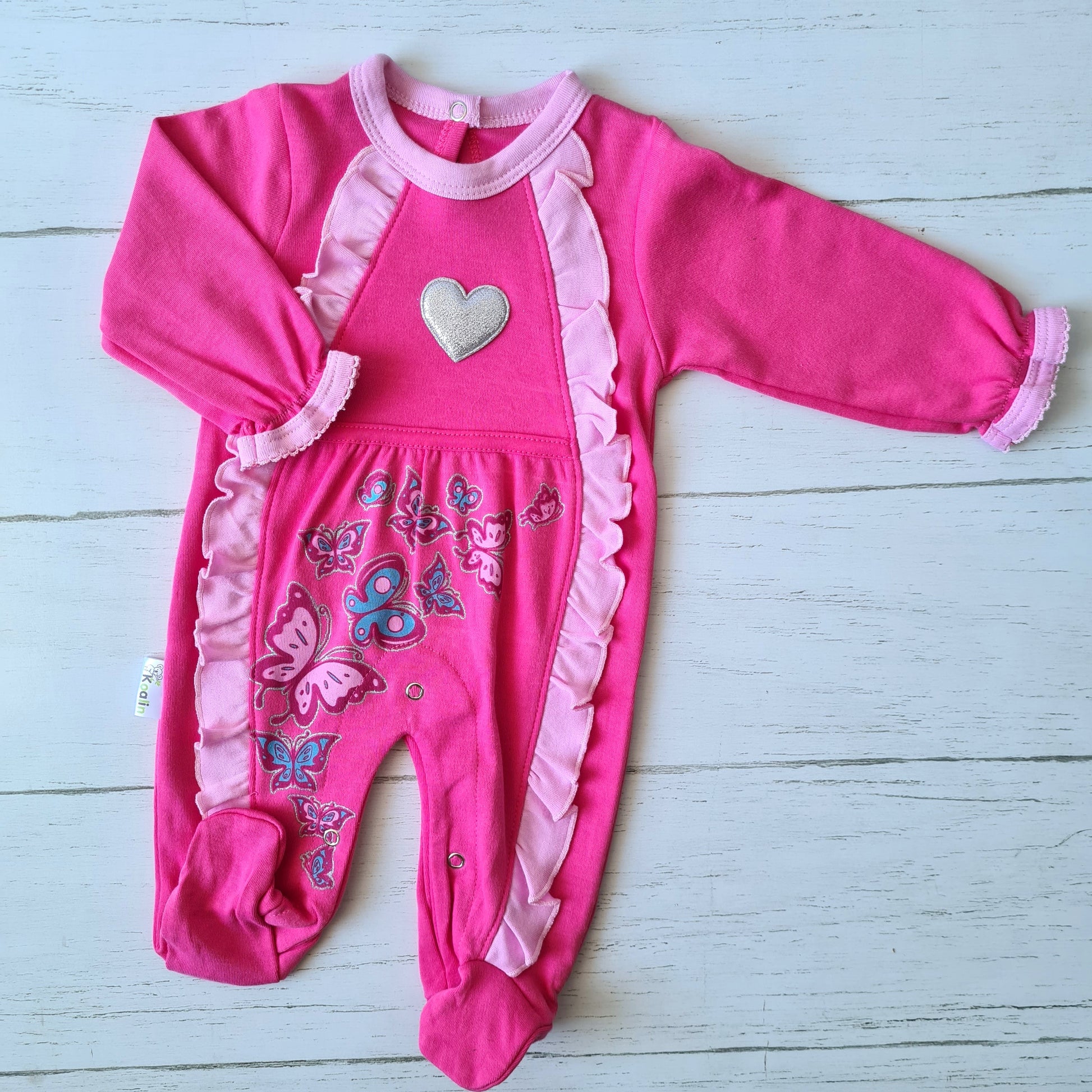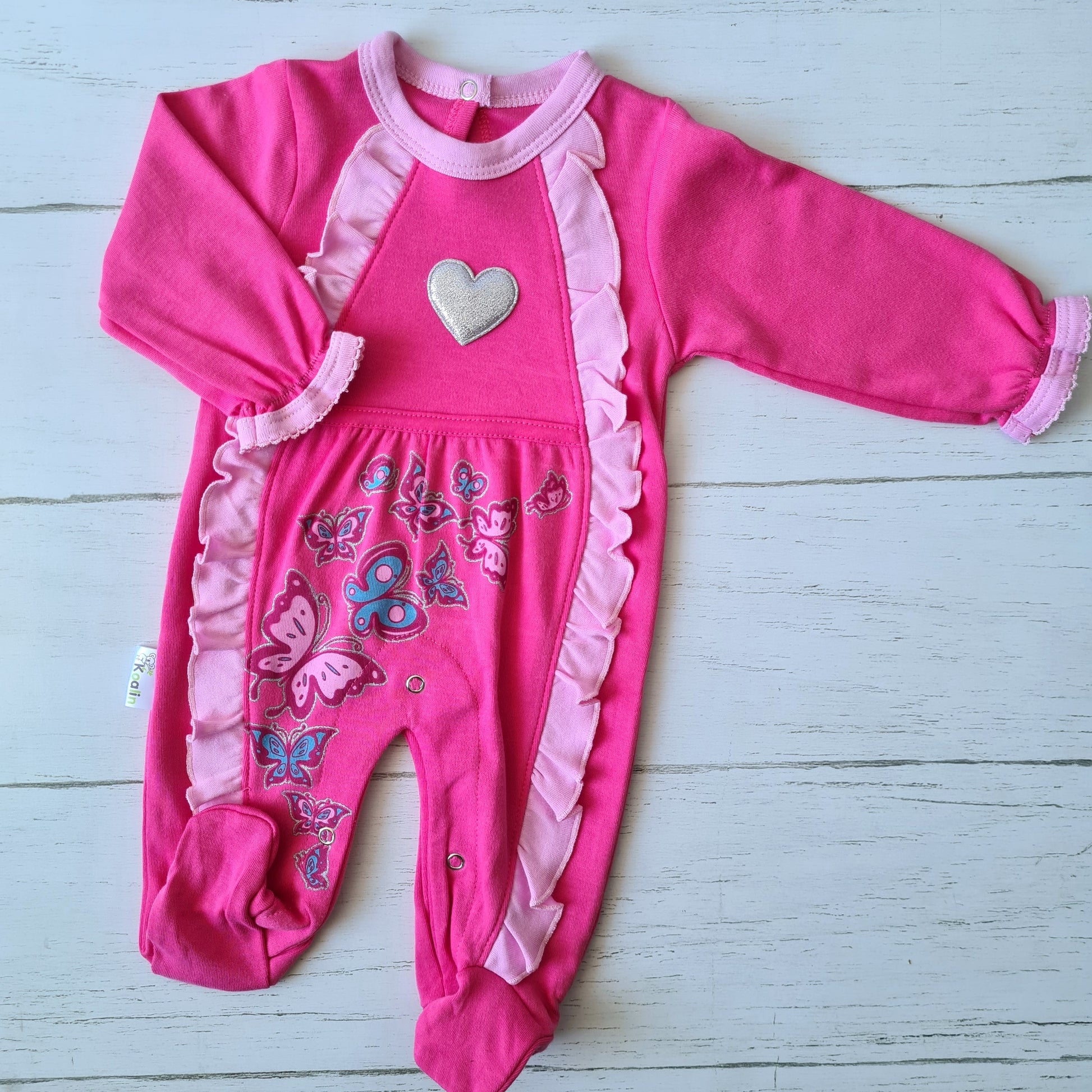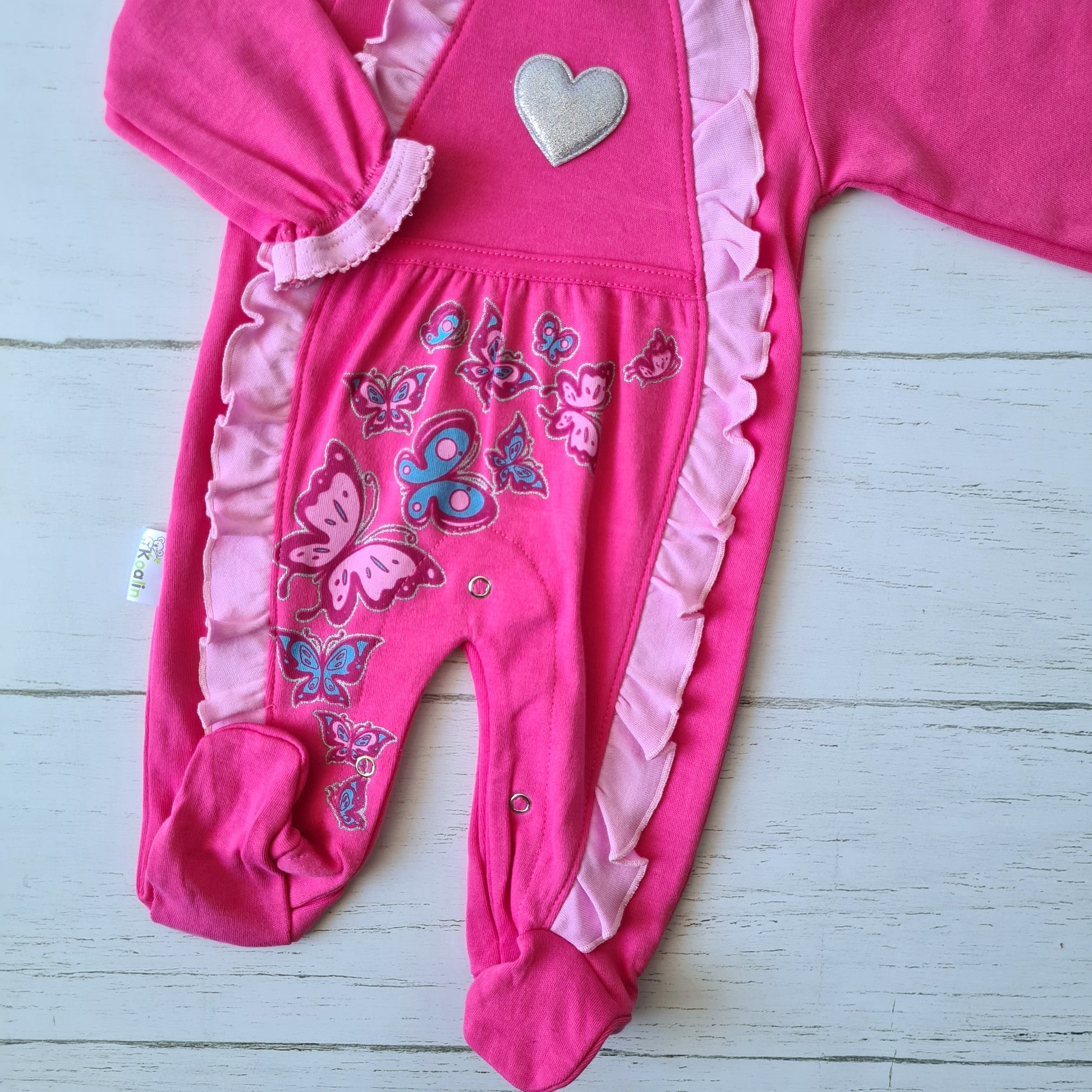 Enterito 100% algodón para bebé niña - Diseño maripositas fucsia
