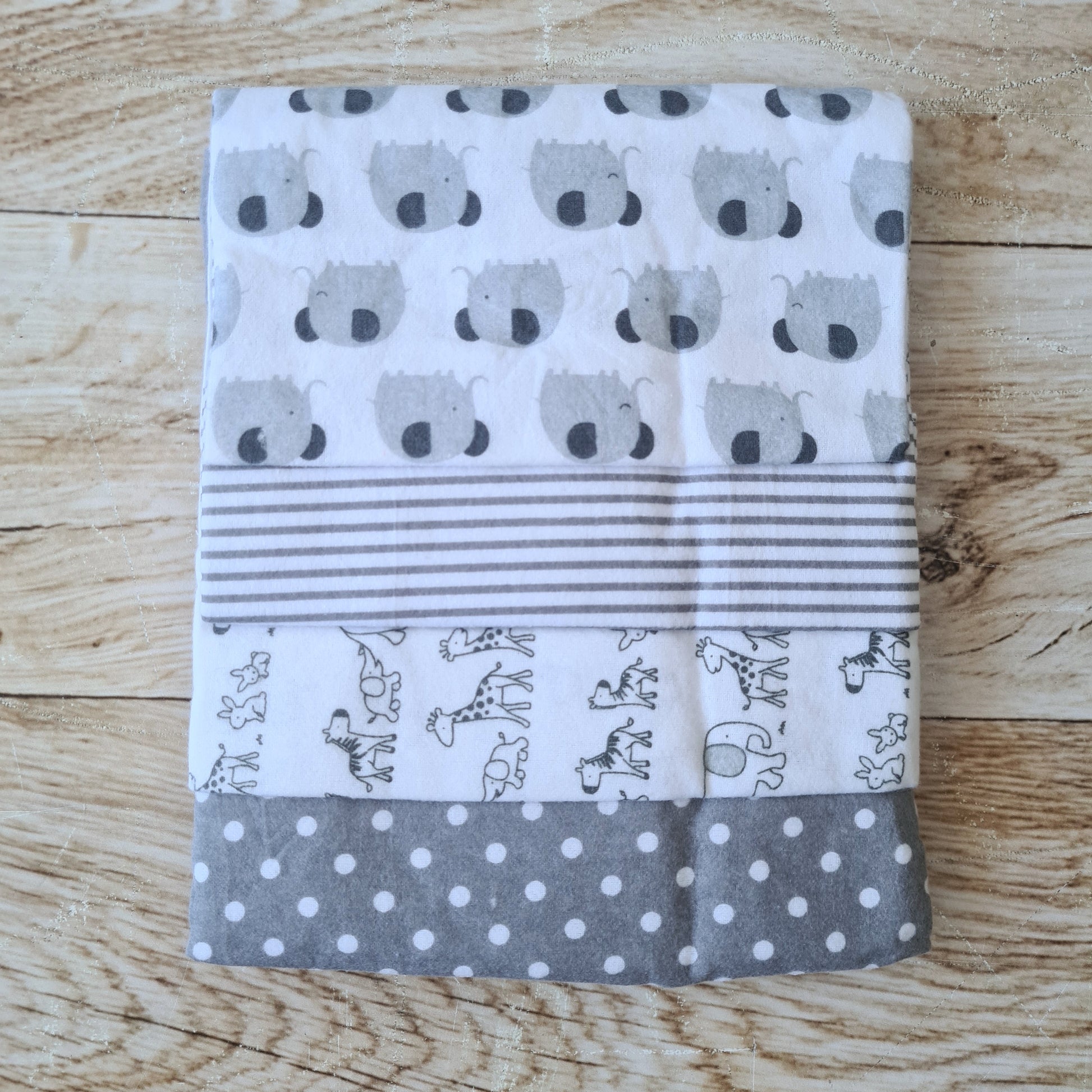 Set 4 tutos 100% algodón para bebé - tonos plomo