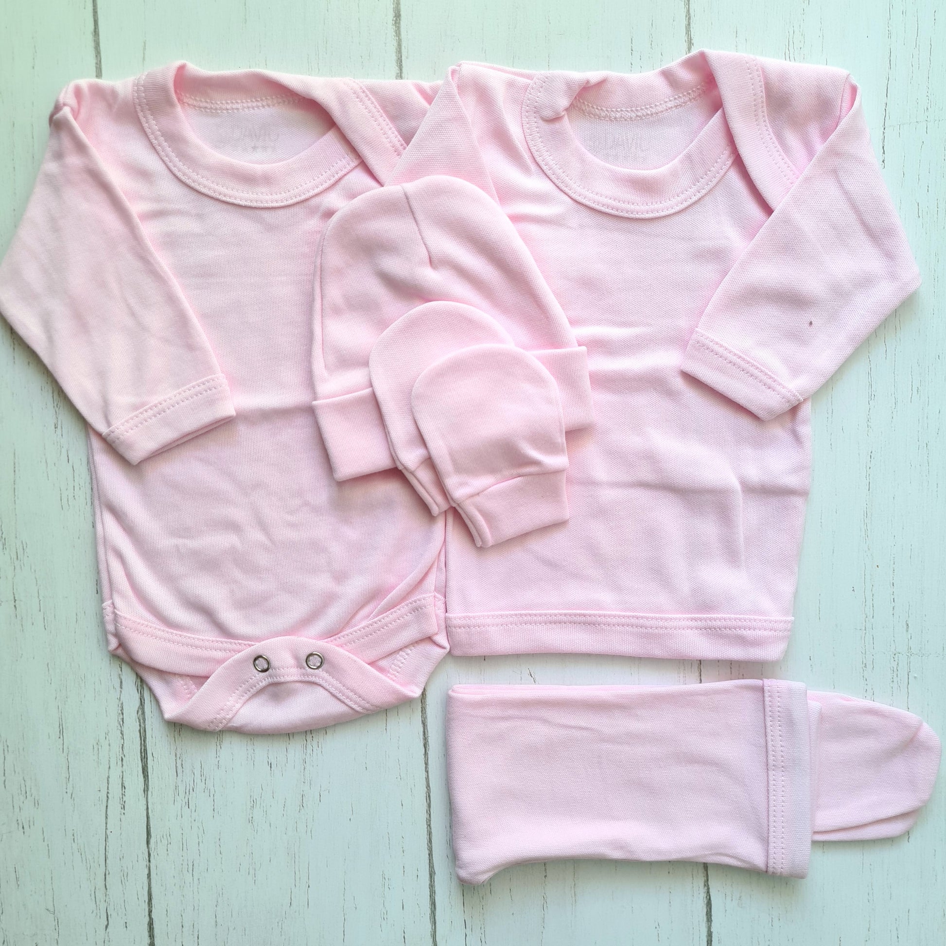 Set ajuar de 5 piezas 100% algodón para bebé - color rosa