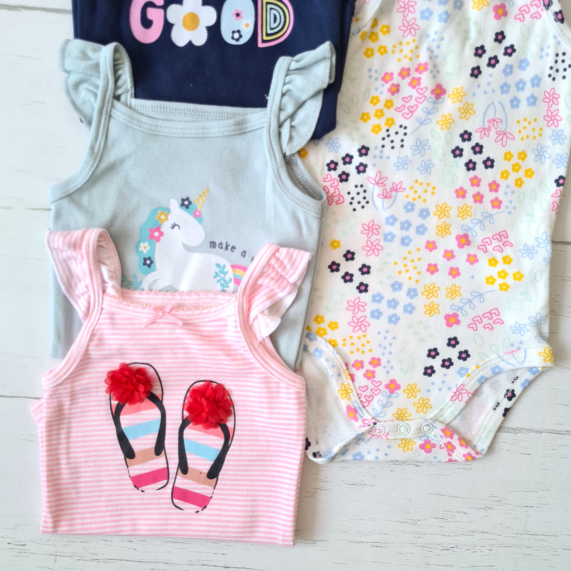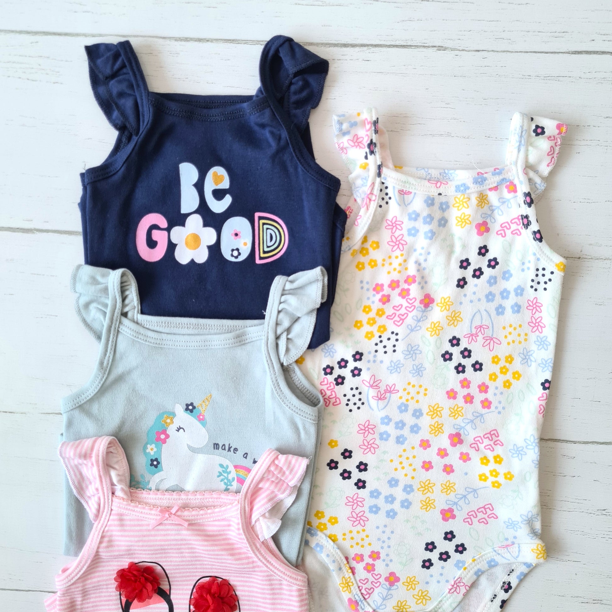 Set de 4 bodies sin manga 100% algodón para bebé - ¡Adelanto de temporada!