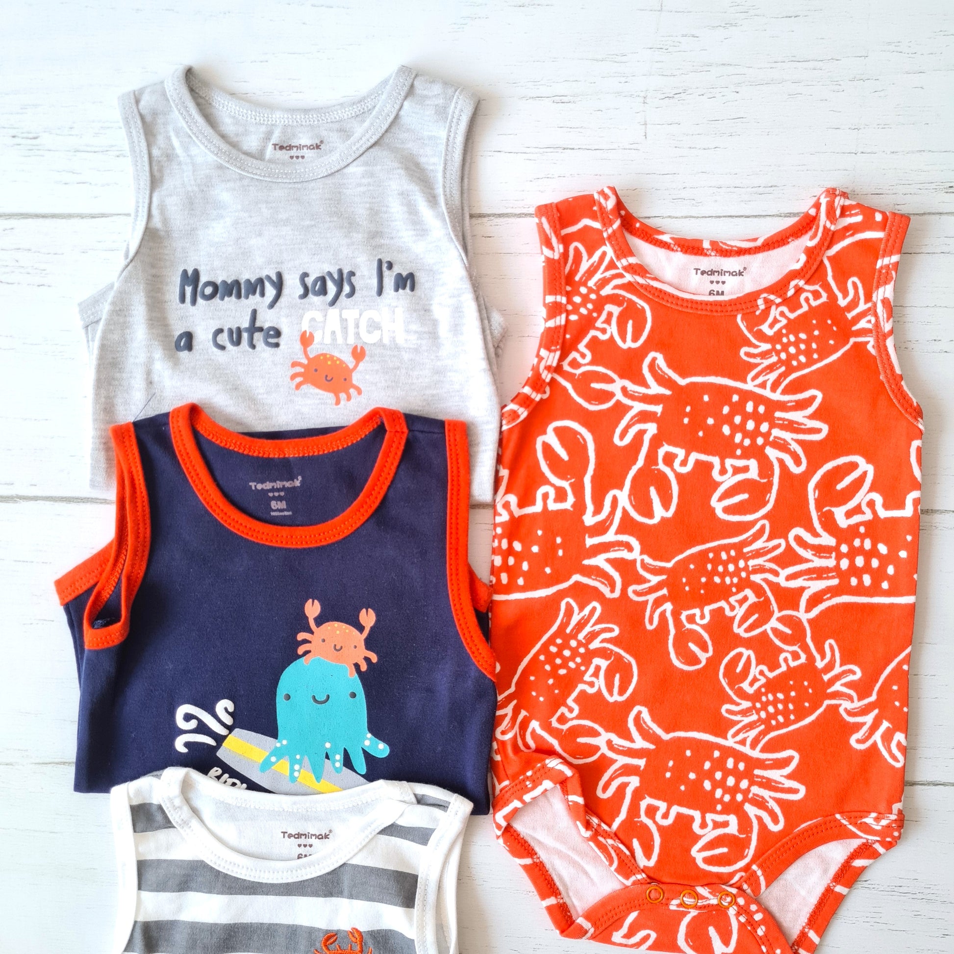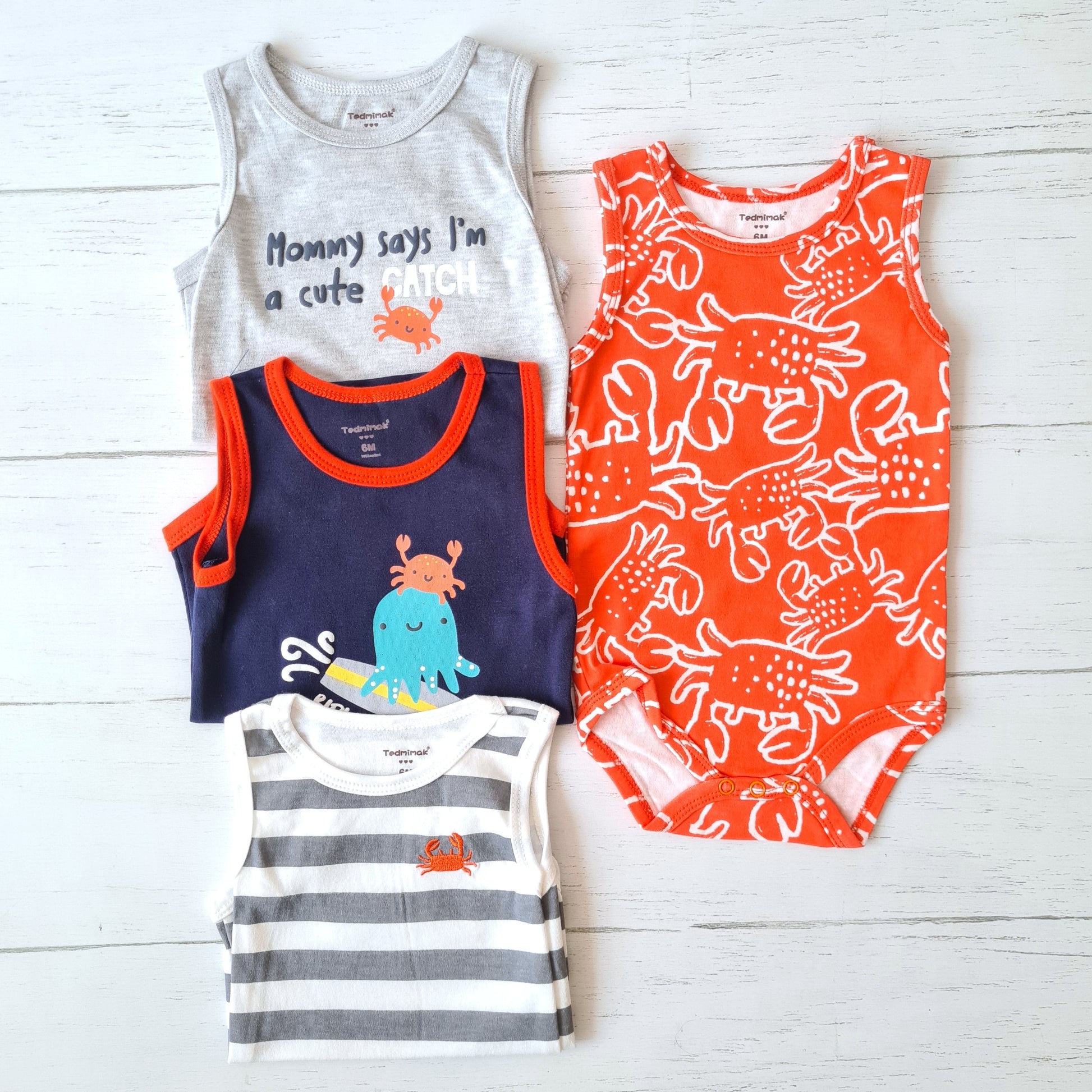 Set de 4 bodies sin mangas 100% algodón para bebé - ¡Adelanto de temporada!