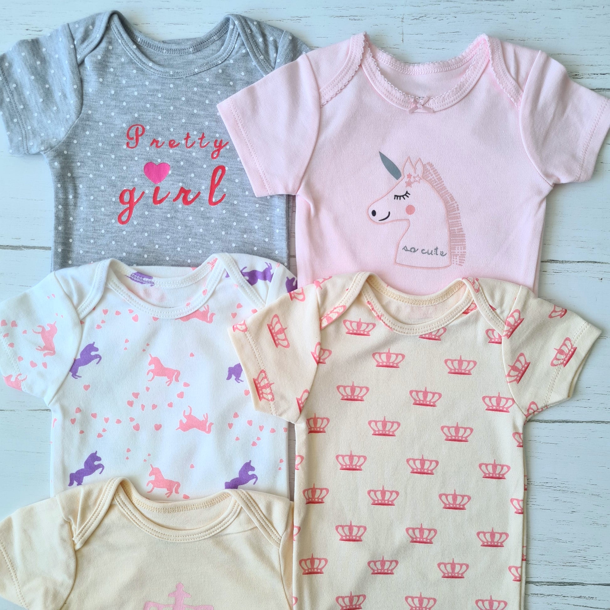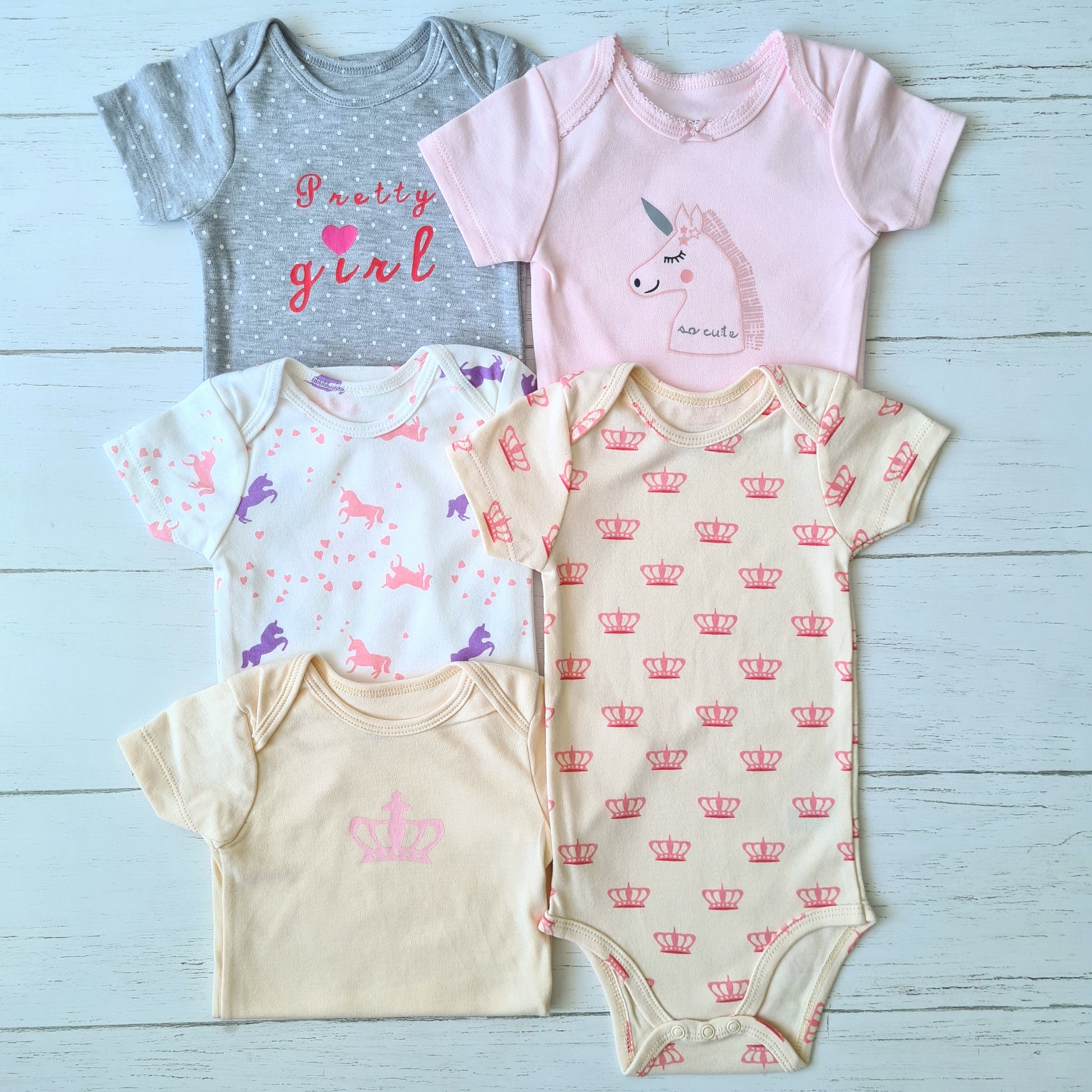 Set de 5 bodies manga corta 100% algodón para bebé - ¡Adelanto de temporada!