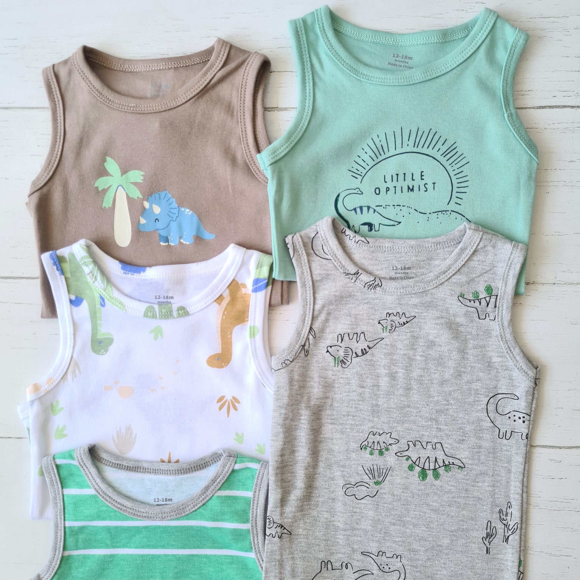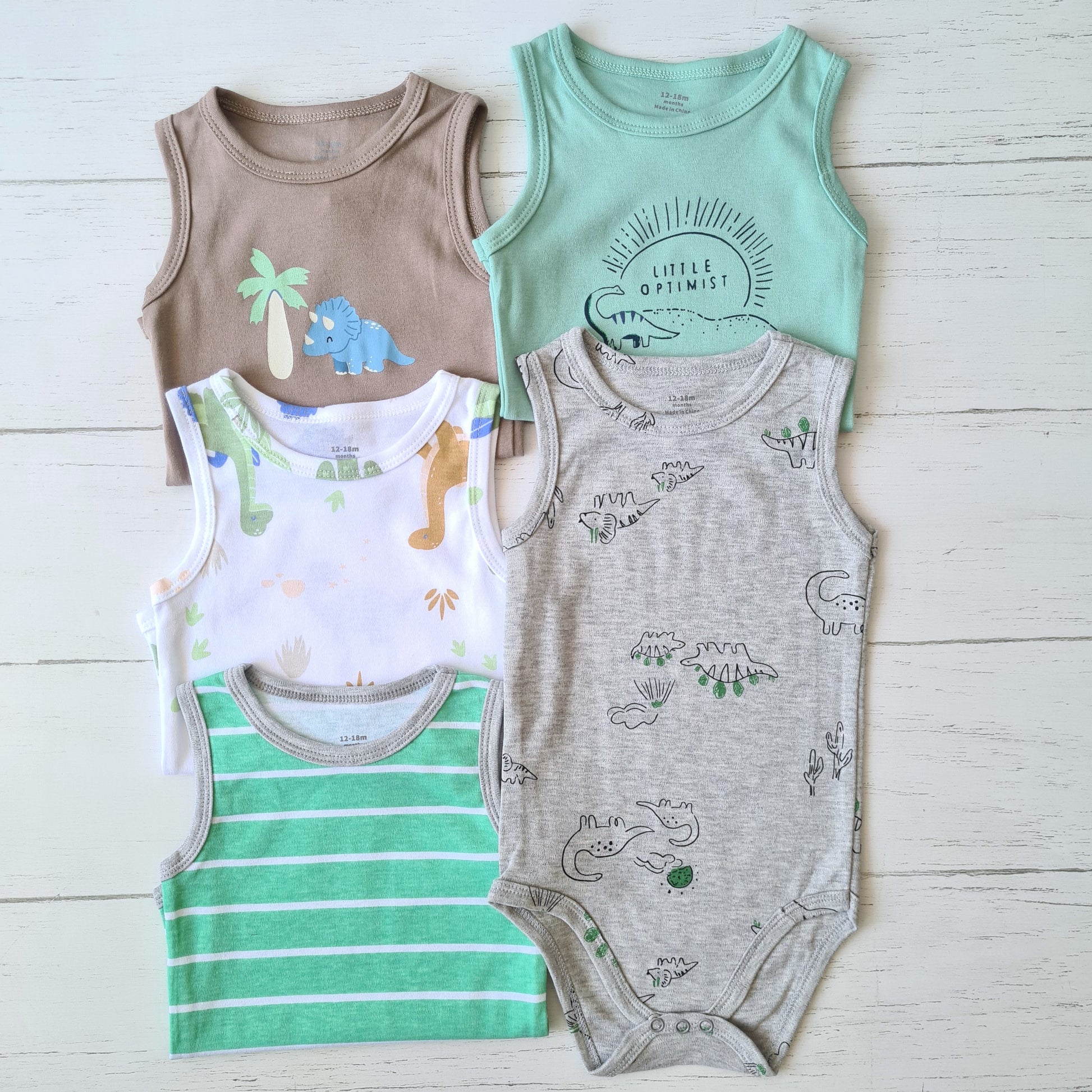 Set de 5 bodies sin manga 100% algodón para bebé - ¡Adelanto de temporada!